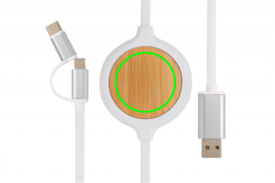 Ein schickes 3-in-1 Ladekabel mit integriertem 5W Wireless Charger. Das 100cm lange Kabel ist aus PVC- freiem TPE Material. Mit Type-C sowie einem doppelseitigem Anschluß für iOS und Android-Geräte mit Micro-USB. Input: 5V/2A. 9V/2A. Wireless Output: 5V1A, 9V/1.1A. Kabel Output max 5V/1A.