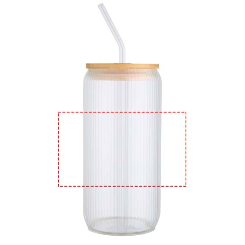 Glasgefäß aus Borosilikatglas mit Glasstrohhalm und Bambusdeckel. Das Glas hat ein einzigartiges Rillen-Design im Inneren und eine glatte Außenseite – ideal zur Anbringung eines Logos. Der verwendete Bambus stammt aus nachhaltiger Quelle und wird unter Berücksichtigung ökologischer und sozialer Verantwortung gewonnen. Geliefert in einer Geschenkbox aus Recyclingkarton. Fassungsvermögen: 650 ml.