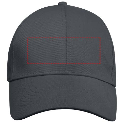 Nachhaltige Kappe für Werbezwecke. Vorgebogener Schirm. Gestickte Ösen zur Belüftung. Dreifach-Gleitverschluss mit Metallschnalle. Kopfumfang: 58 cm.
