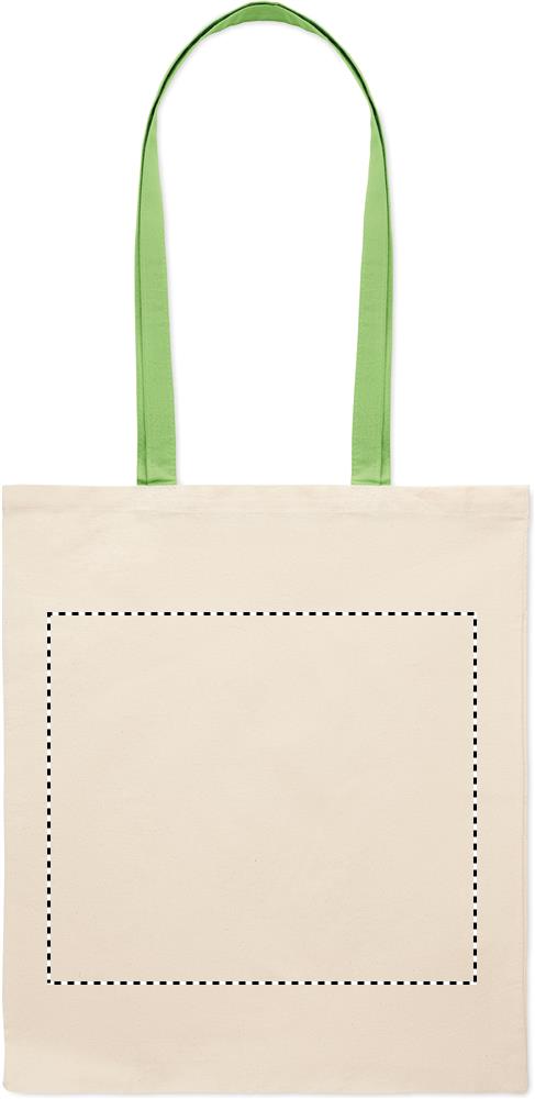 Cotton shopping bag with coloured long handles. 140 gr/m².