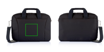 300D polyester laptop bag which is ideal for lightweight travelling. It has all the pockets you need, 15.4” laptop compartment, space to put your papers and a trolley sliding system. PVC free.