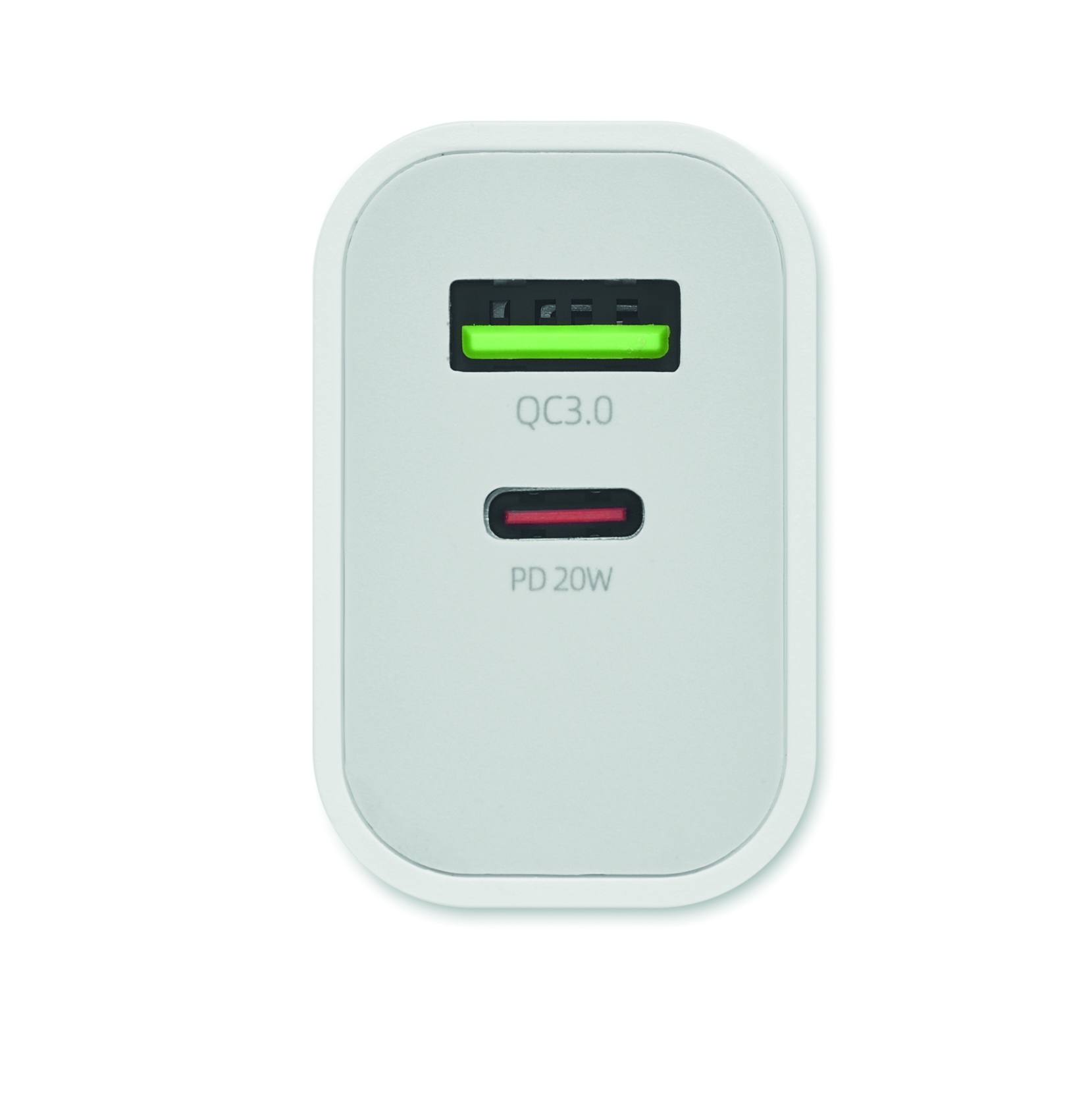 Logotrade advertising product picture of: 18W 2 port USB charger EU plug