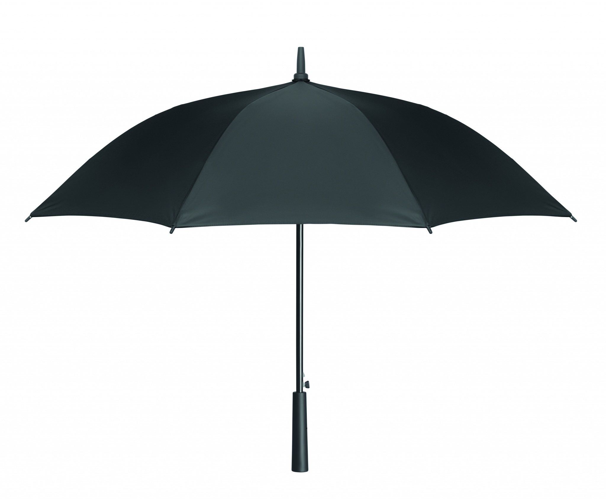 23 inch auto open windproof umbrella in 190T pongee with fiberglass frame and black plated shaft and plastic tips. ABS handle with rubber finish. Manual closure.