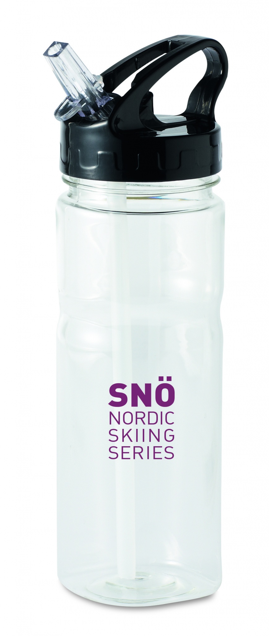 Drinking bottle in PCTG which is BPA free with foldable mouthpiece on the lid. Capacity: 500 ml. Leak free.