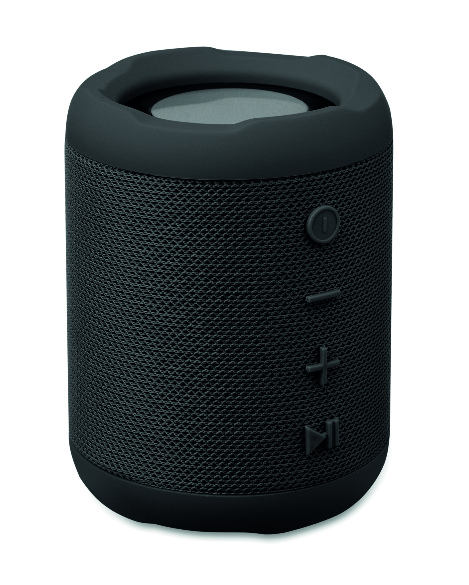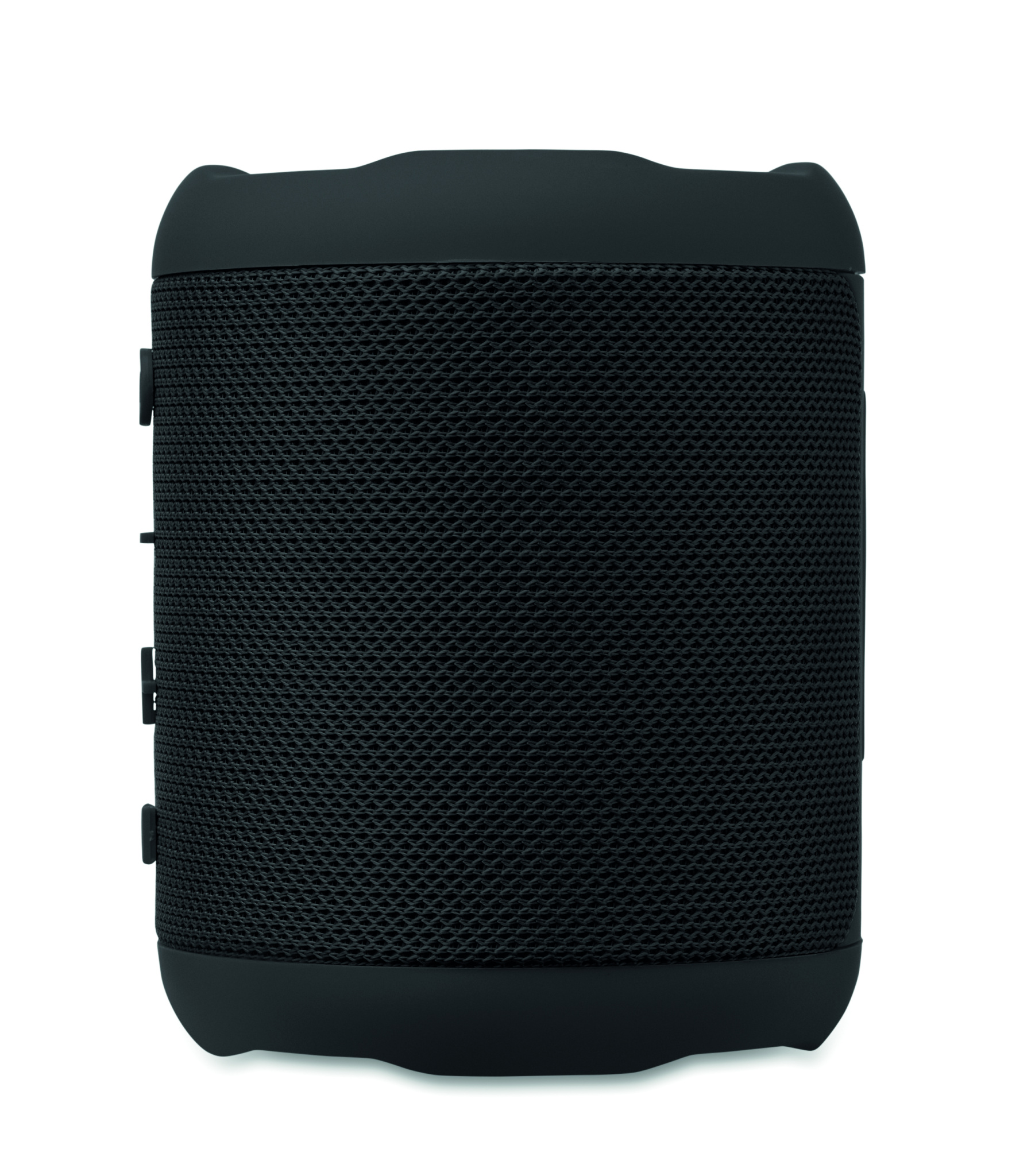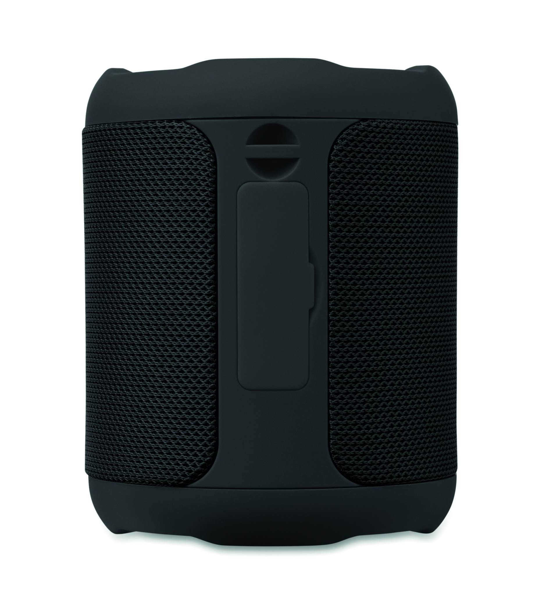 5.0 wireless speaker in ABS with RPET fabric. 1 Rechargeable Li-ION 800 mAh battery included. Includes an SD card port and an AUX/ USB cable. Output data: 5W, 3 Ohm and 5V. Playing time approx. 3h.