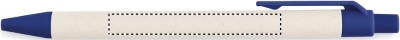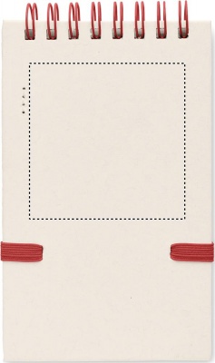 A6 Recycled milk cartons 70 sheet recycled lined paper notebook (70 % recycled milk carton and 30% recycled paper) with matching pen. Ring bound. Matching push button ball pen. Blue ink. Elastic closure strap and pen holder.