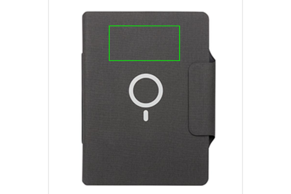 Charge your mobile device wirelessly at full speed with this A4 PU material notebook portfolio with integrated magnetic 10W wireless charger and 8000 mah powerbank. Snap your phone (iPhone 12 or higher) to the wireless charger and the phone will align perfectly with the magnets inside. The 10W wireless charger is compatible with all QI devices (Iphone 8 and up and Android devices) Type-C input 9V/2A; Wireless Output 9V/1.1A; Type-C output 9V/2A. The notebook includes 20 sheets/40 pages of 80 gsm lined paper. With phone/tablet pocket and pen loop. 19 pcs high quality N52H heat resistant magnets integrated. Registered design.