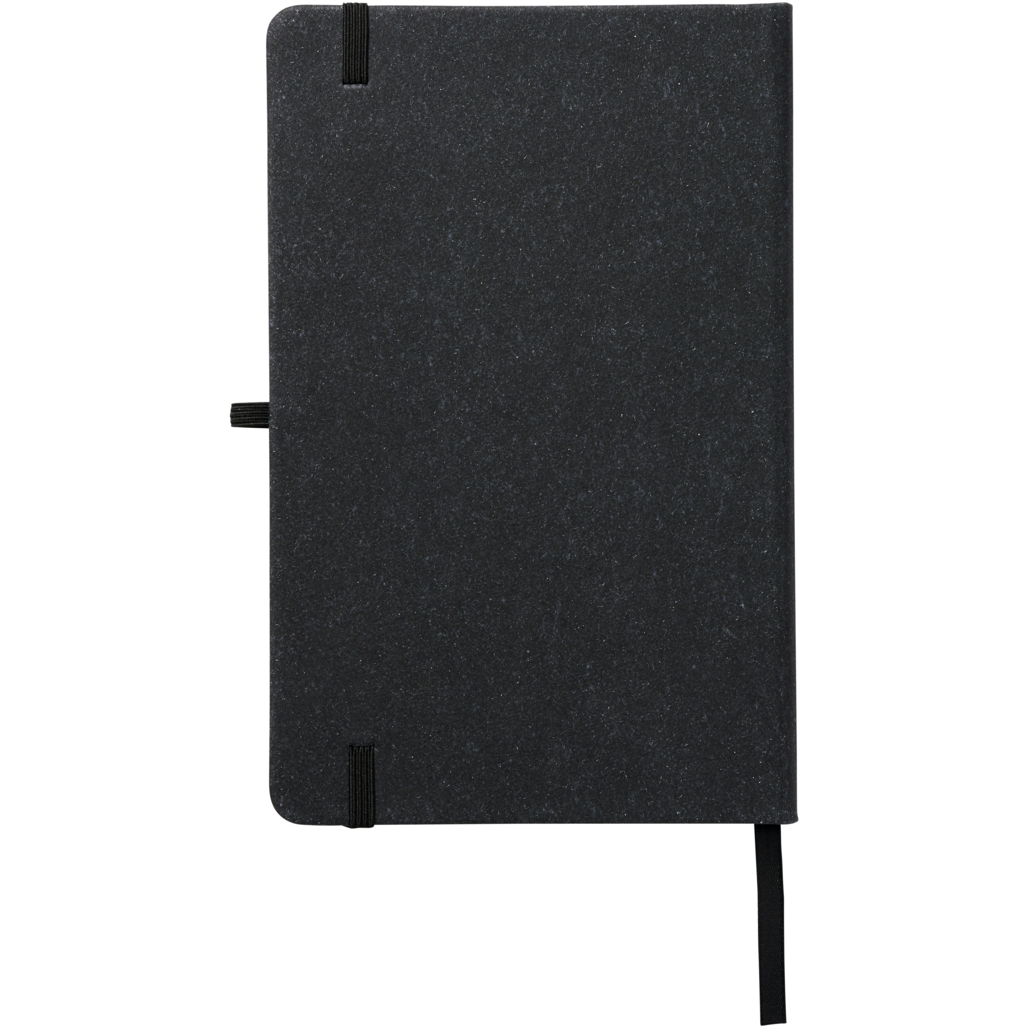 A5 size reference notebook with cover made of leather leftover pieces. Features an elastic band, pen loop, ribbon marker and 80 sheets, 80 g/m² lined paper.