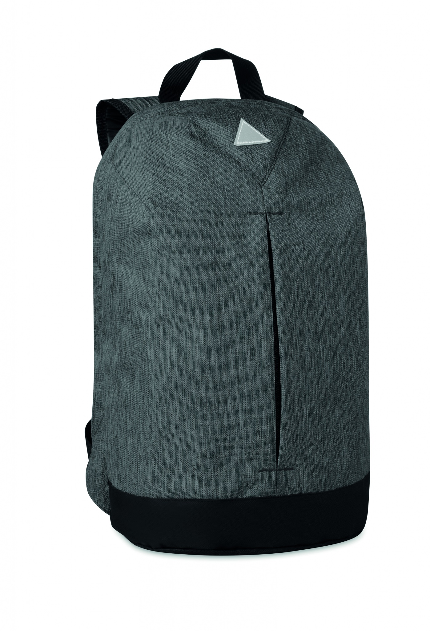 13 inch laptop backpack in 600D 2 tone polyester with outside pocket with zipper. Zipper main compartment on backside for better protection.