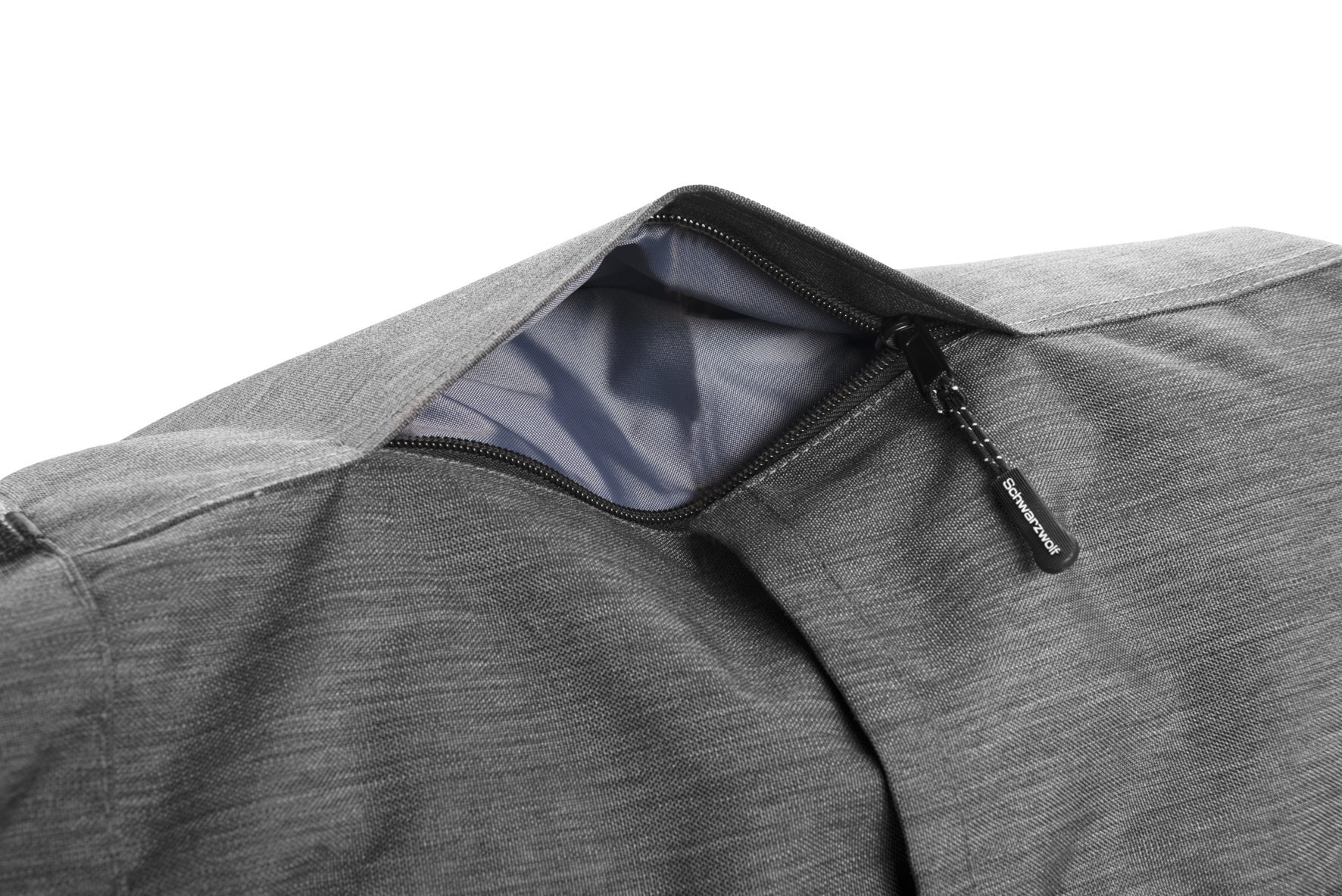 Practical rolltop Schwarzwolf backpack in a grey colour is suitable for tourism as well as every day use. The backpack has two small front zipper pockets, two sides pockets and a back zipper entry to the main compartment which includes one big separated pocket and two small pockets for accessories. After rolling it fastens with two plastic buckles. The backpack has a padded back and shoulder straps. Volume: rolled backpack 25 l, folded backpack 32 l