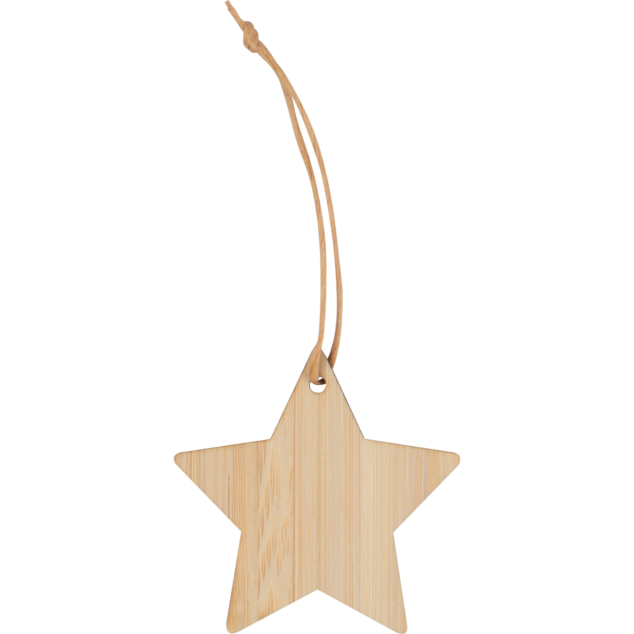 Star-shaped Christmas or decorative pendant made of bamboo with a hanging loop. Your logo will be engraved on the star.