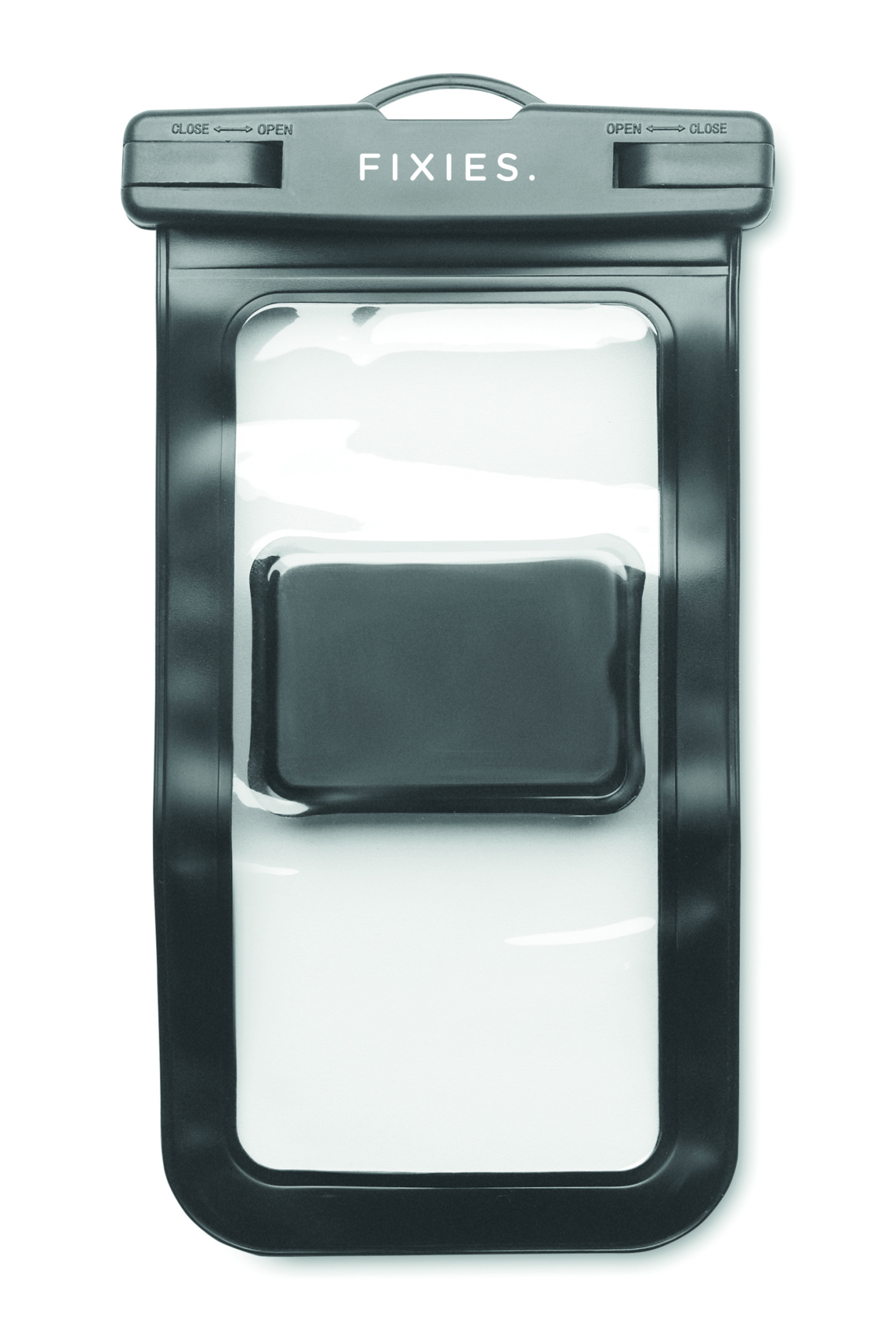 Waterproof bike mobile phone mount case in PVC, rotates through 360 degrees. Waterproof rating: IPX 6. Fits for 6,7 inch size.