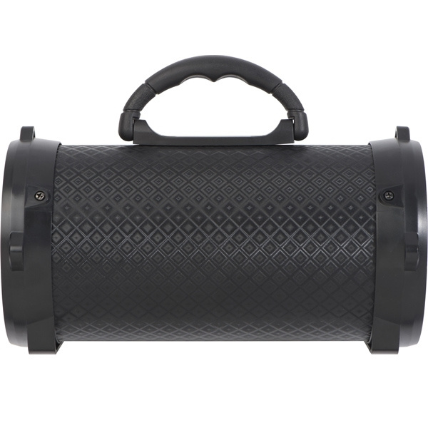 Bluetooth speaker with many features: FM radio, AUX port, MP3 playback via Micro SD cards or USB slot, includes USB charging cable with 3.5 mm jack plug as well as a detachable carrying strap and a battery life of 2 hours. Your logo will be printed on the case.