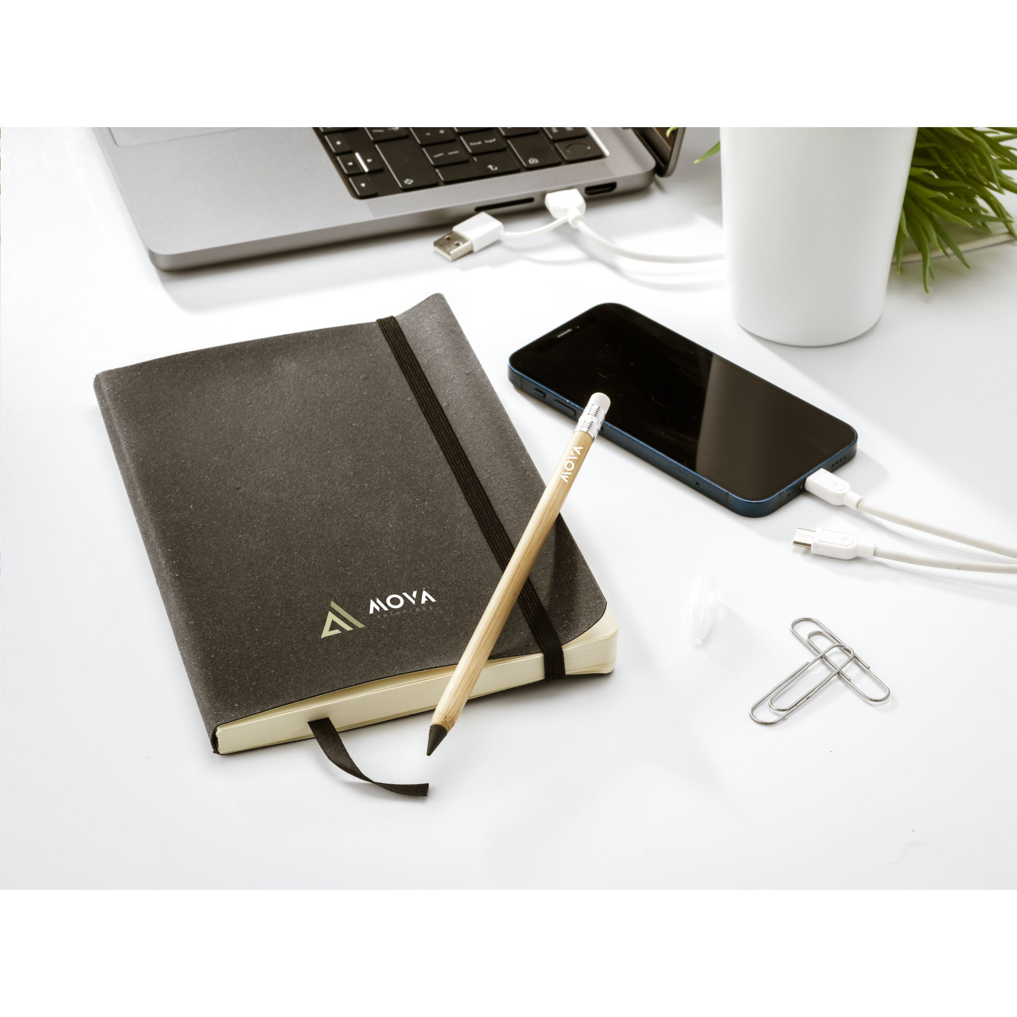 Charging cable made from recycled ABS and recycled TPE. Input: Type-C and USB-A connector. Output: Type-C and Lightning. RCS-certified. Total recycled material: 62%. Cable length: 120 cm. Each item supplied in an individual envelope.