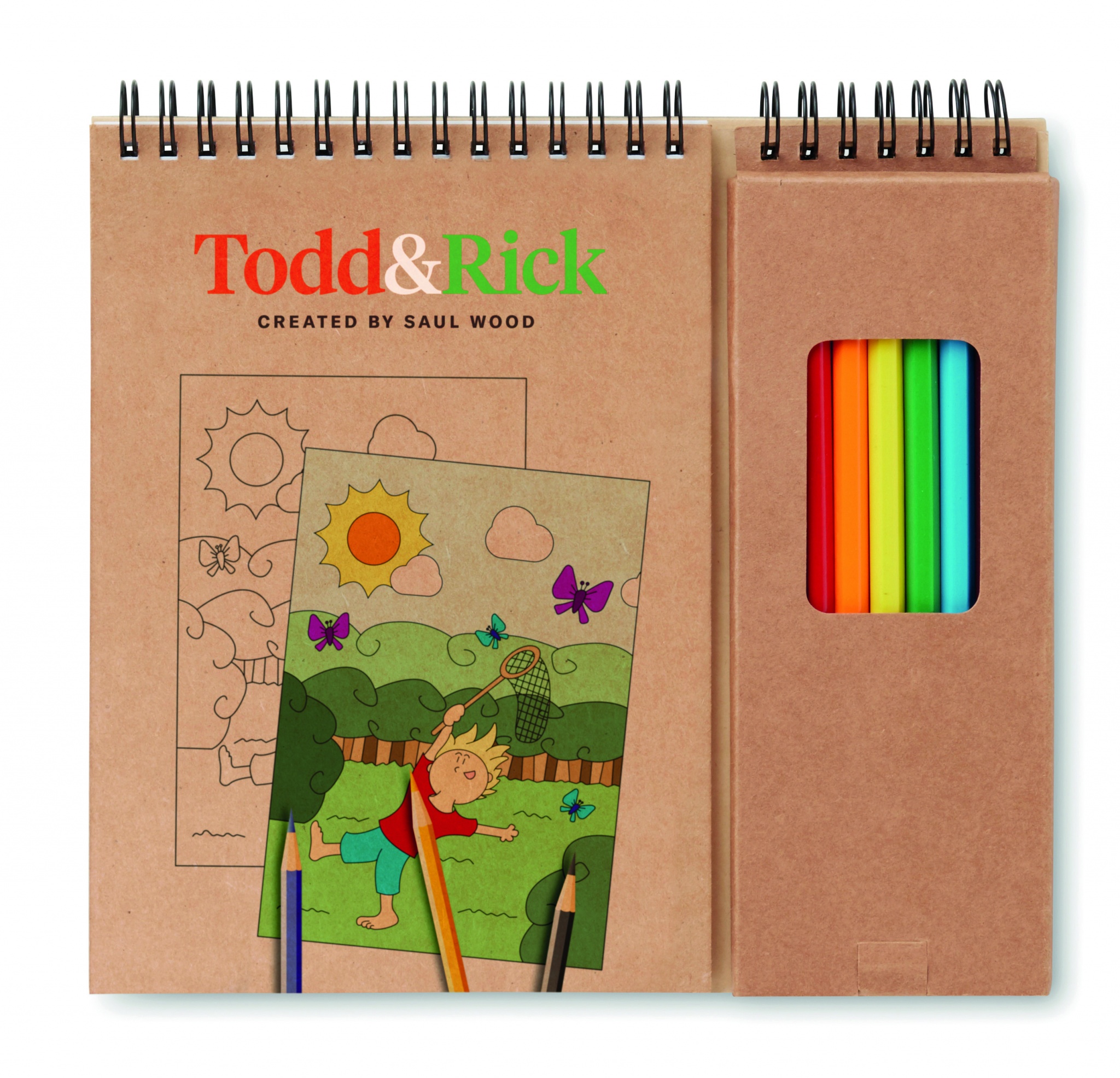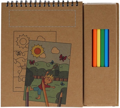 Colouring set with 24 pages 6 of which have pictures to colour in and 18 blank pages. Includes 8 colouring pencils.