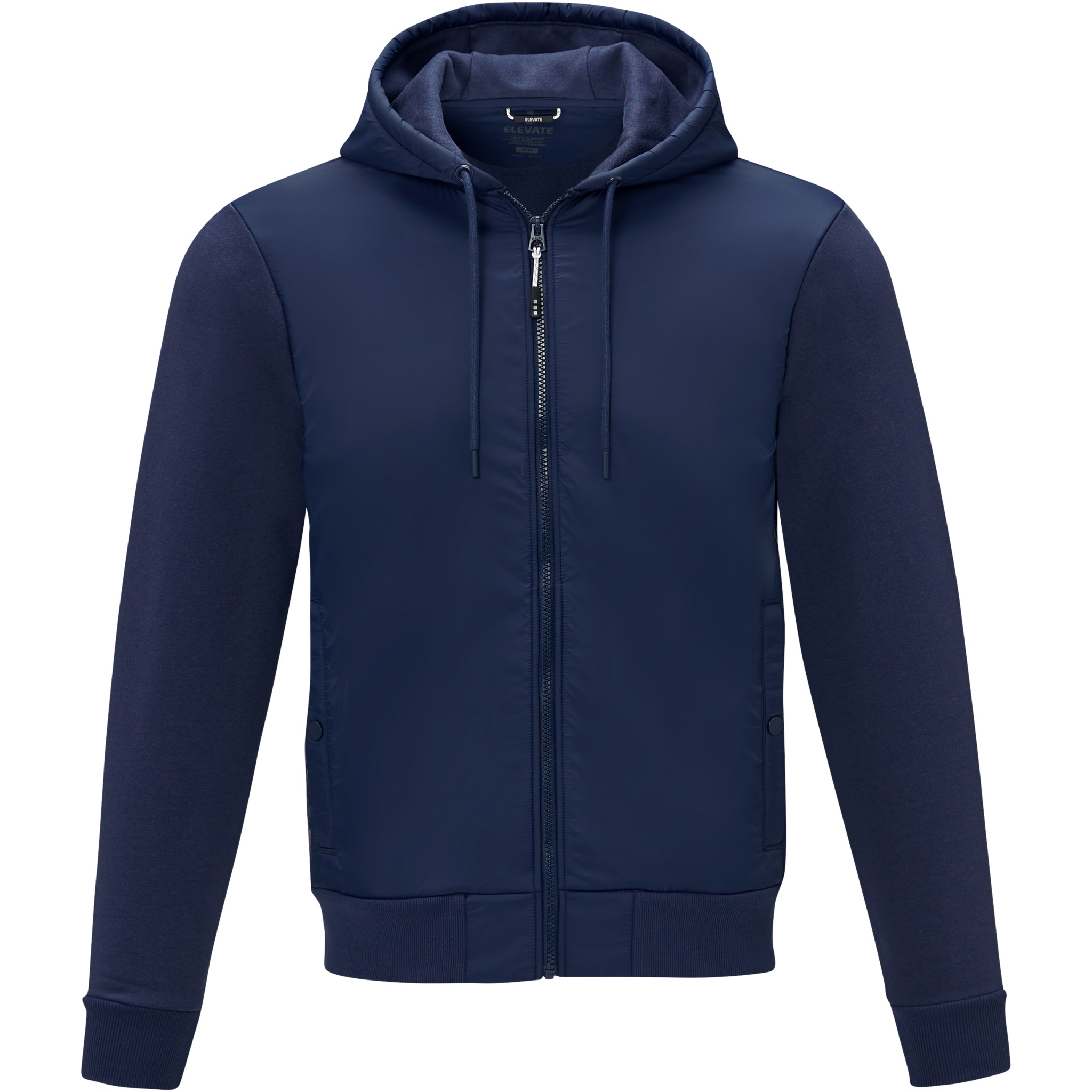 The Darnell men's hybrid jacket – a perfect fusion of style and functionality. Partly made of 38 g/m² dull cire 380T nylon woven fabric, ensuring durability and a lightweight feel. The contrast fabric is a knit fabric of cotton and polyester (345 g/m²), providing comfort and ease of movement. The interior of the jacket is brushed, providing extra warmth and a soft feel. The jacket is designed with an inside pocket, providing convenient storage for your essentials. The flat knit elasticated rib cuffs and bottom hem offer a comfortable and secure fit, adding a touch of refinement to the overall design. The Darnell hybrid jacket is a perfect choice for everyday wear and casual occasions.