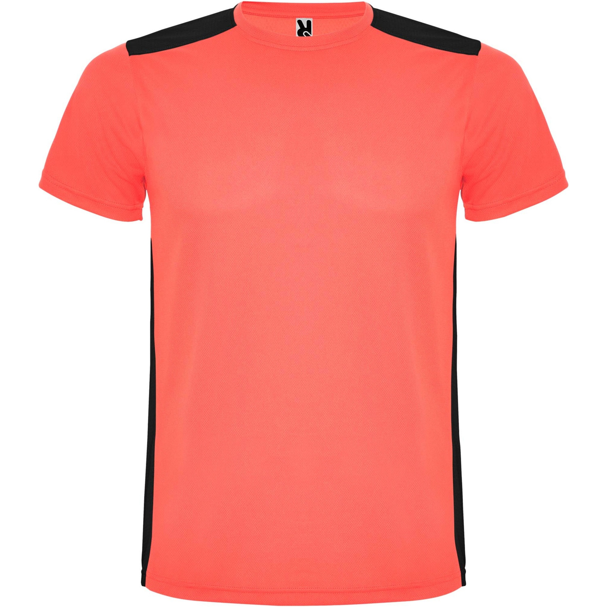 Detroit short sleeve kids sports t-shirt, Fluor Coral / Solid black