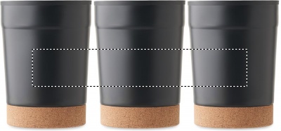 Double wall tumbler with stainless steel outer and PP liner inside, with cork base and with sliding sip hole. Leak-free. Capacity: 300 ml.