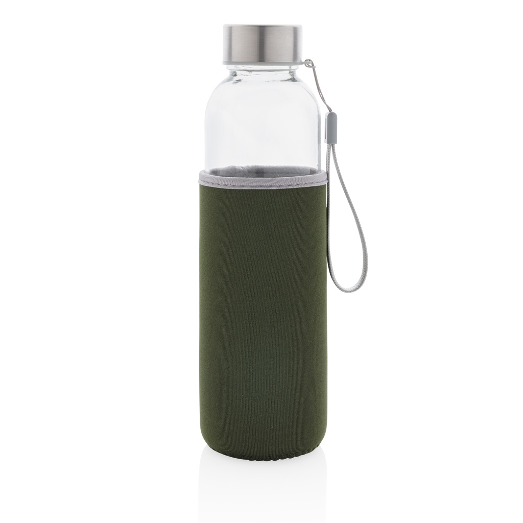 Glass bottle with neoprene sleeve, green