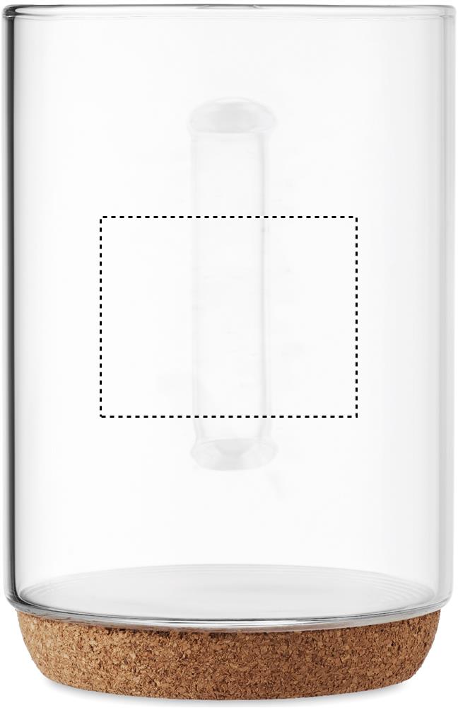 Borosilicate glass mug with cork base. Capacity: 400 ml. Cork is 100% natural material. Due to its structural nature and surface porosity the final print result per item may have deviations.