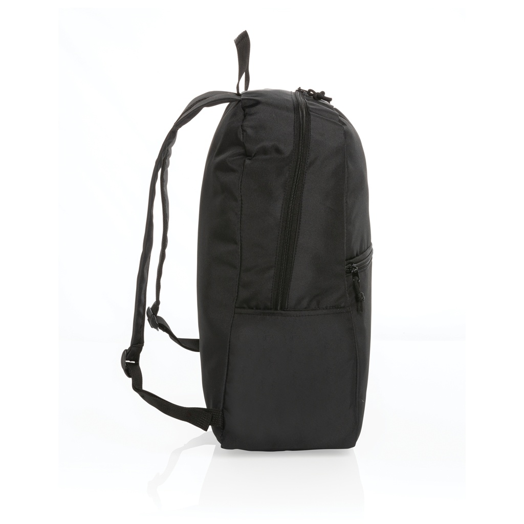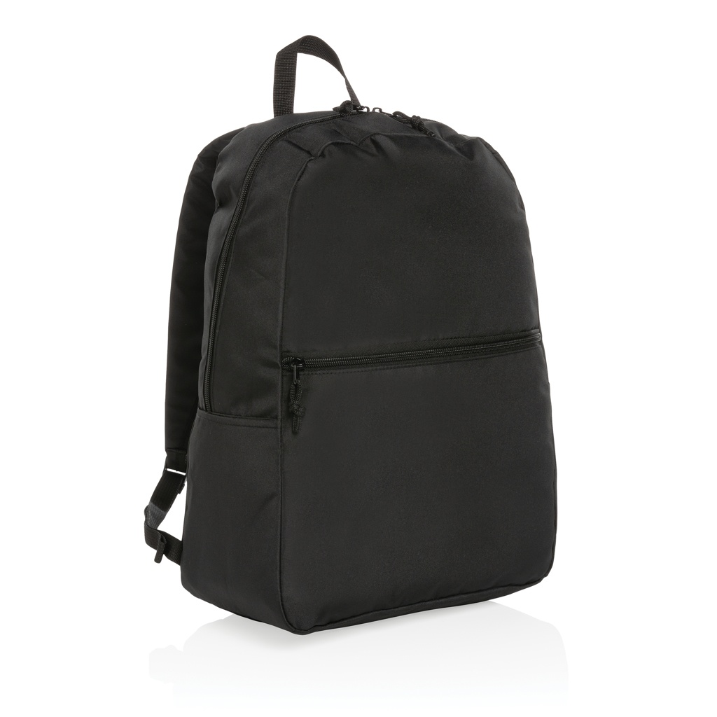 No greenwashing, but telling a true story about sustainability! This Impact 300D RPET backpack is made with AWARE™ tracer. With AWARE™, the use of genuine recycled fabric materials and water reduction impact claims are guaranteed, by using the AWARE disruptive physical tracer and blockchain technology. Save water and use genuine recycled fabrics. With the focus on water 2% of proceeds of each Impact product sold will be donated to Water.org. Keep it simple and stylish with this basic backpack. A perfect size for all your essentials and a convenient front zipper pocket. This backpack has reused 11,5 500ml PETbottles and saved 6,85 litres of water. Water savings are based on figures when compared to conventional fibre. This calculated indication is based on reliable LCA data as published by Textile Exchange in their Material Snapshots 2016.