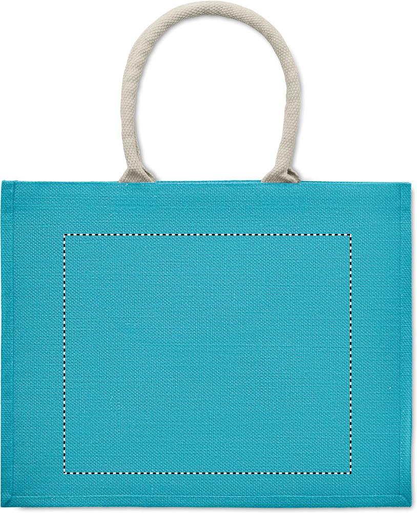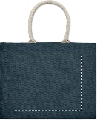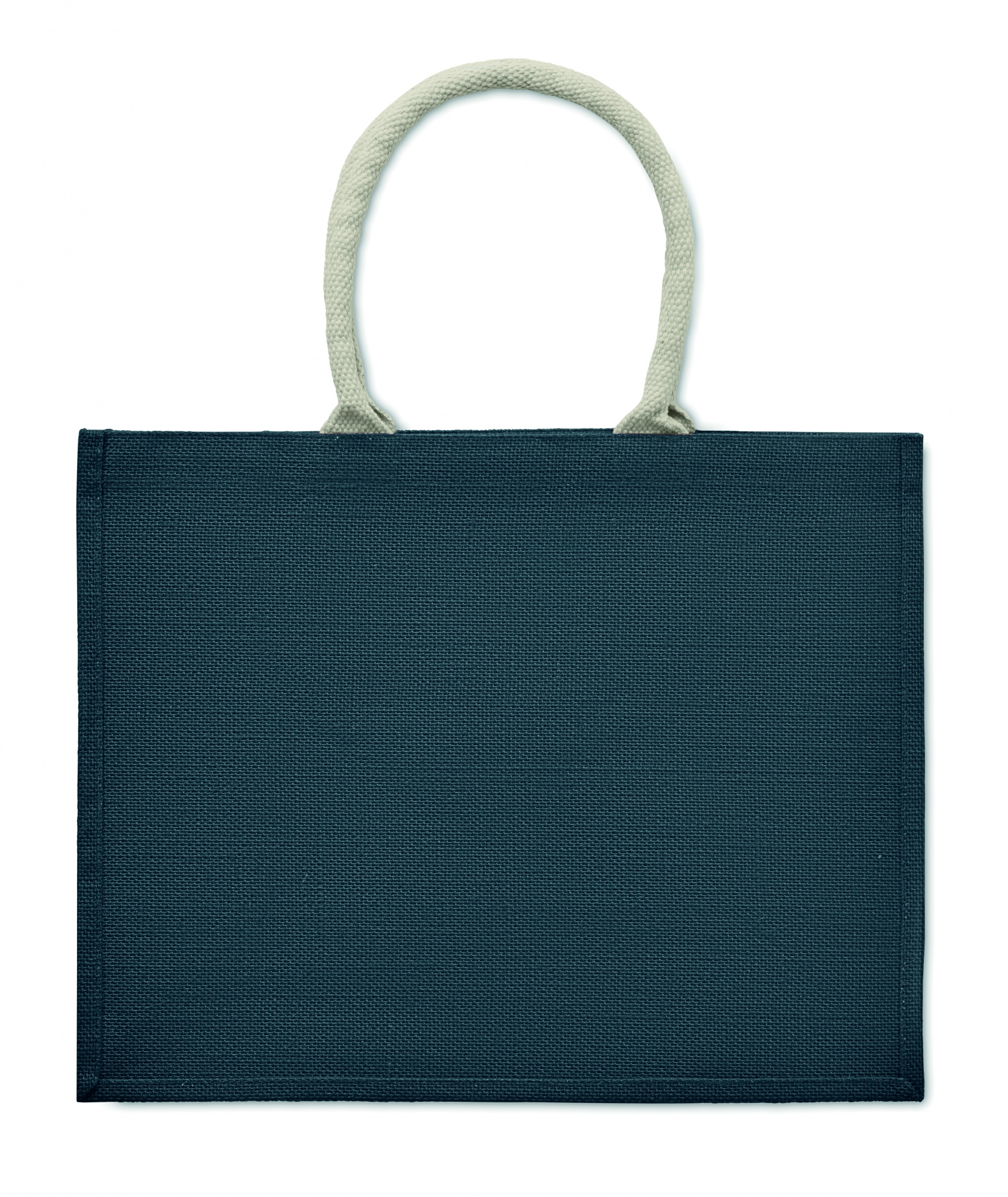 Jute laminated shopping or beach bag with cotton handle. Short handles.