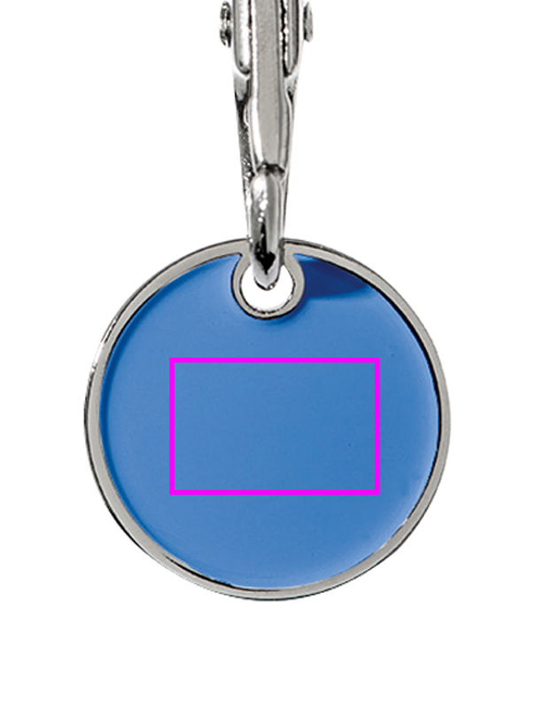 Metal keyring with snap hook and shopping coin. One side of the coin is colored. We will engrave your logo onto the silver side.