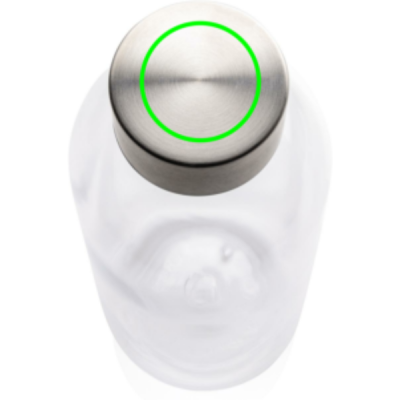 Leakproof water bottle with metallic lid, transparent