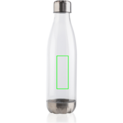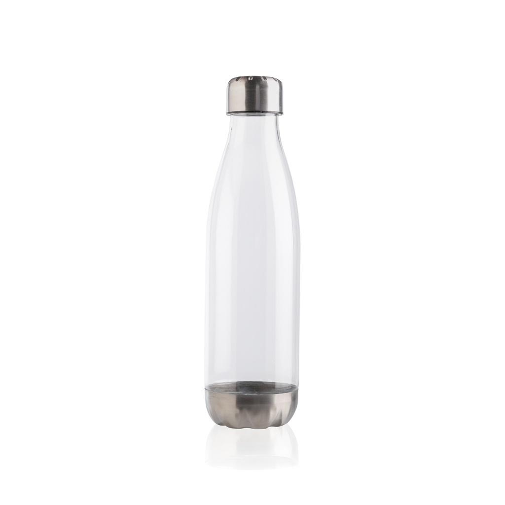 Leakproof water bottle with stainless steel lid, transparent