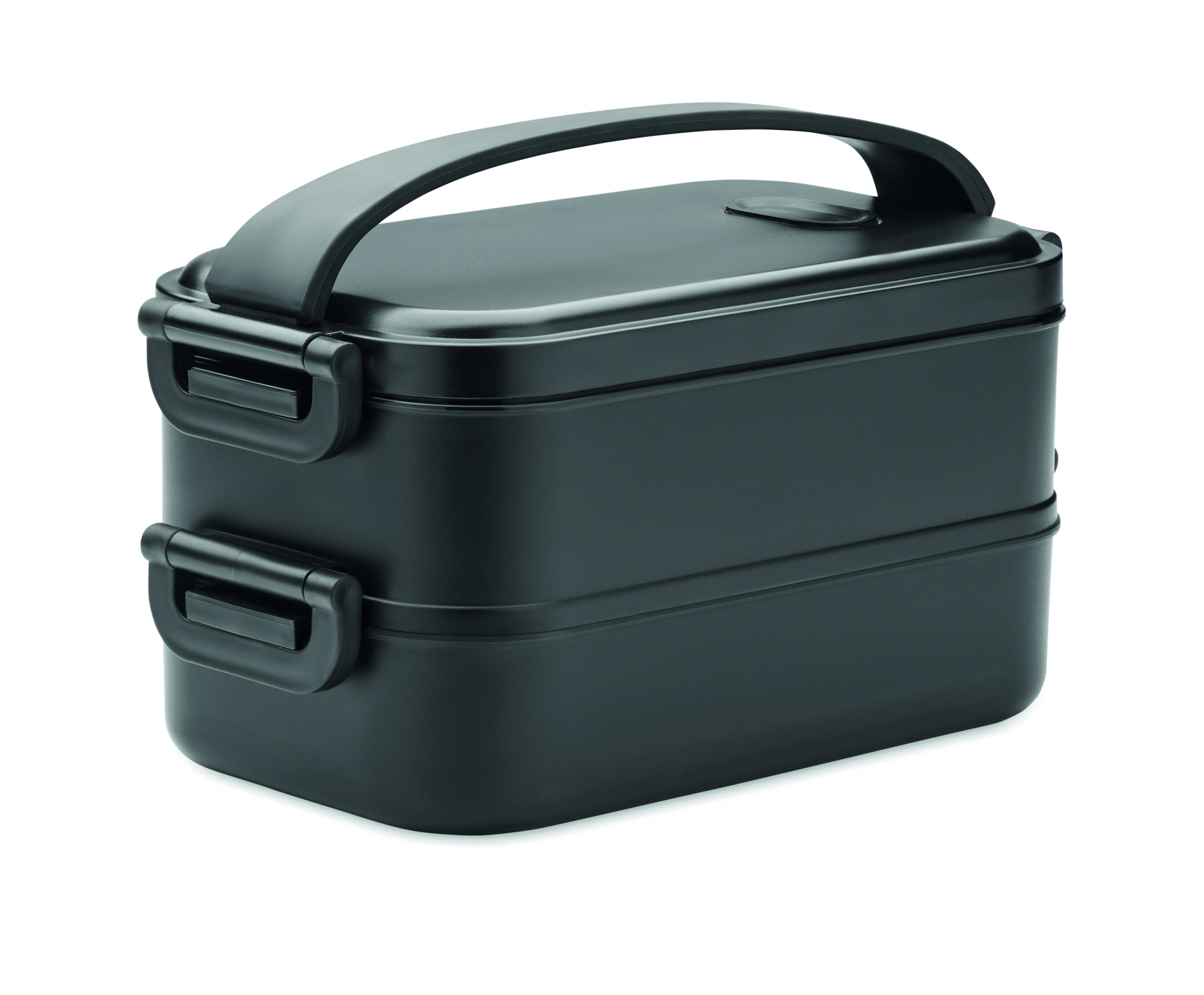 Recycled PP two-tier lunch box with removable divider with side buckles and airtight lid. Capacity: 800 ml (2x).