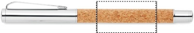 Metal pen set with ball pen (twist mechanism) and roller ball (open cap) with cork barrel. Presented in matching cork box. Blue and black ink respectively. Cork is a natural material, due to its structural nature and surface porosity the final print result per item may have deviations.
