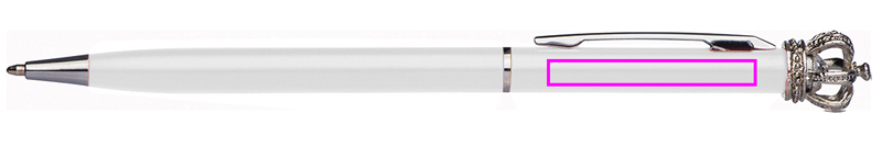 Slim ballpen made of metal with blue writing refill. The crown and the small glass diamond make this pen unique. We engrave your logo to the right of the clip.