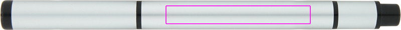 Aluminum ballpoint pen with black-writing refill and yellow highlighter on the opposite side. We engrave your logo on the shaft.