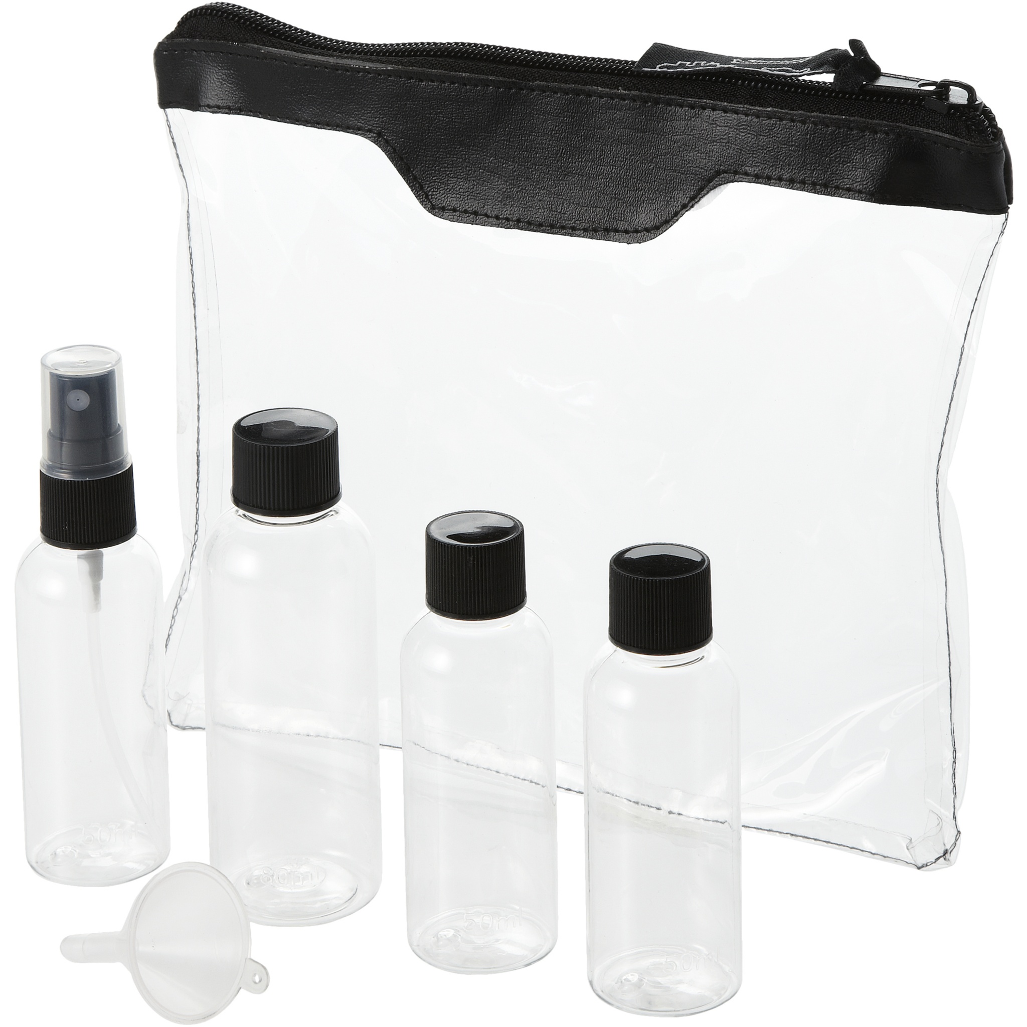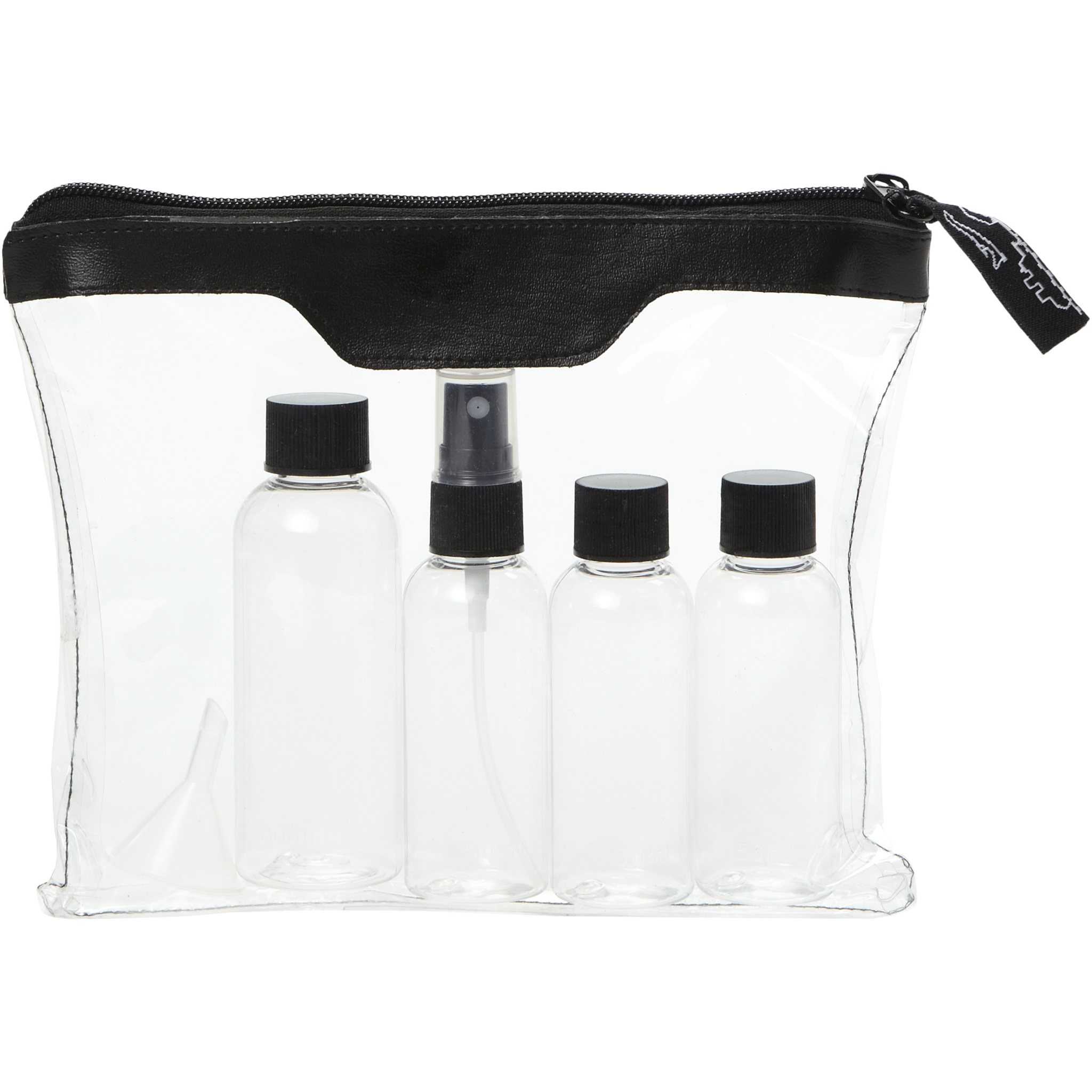 Airline approved toiletry bag which you can bring onboard. Including 2 x 50 ml bottle, 1 x 90 ml bottle and 1 x vaporizer and funnel. Bottles, vaporizer and funnel packed in polybag, comes separately from pouch. Decoration not available on components.