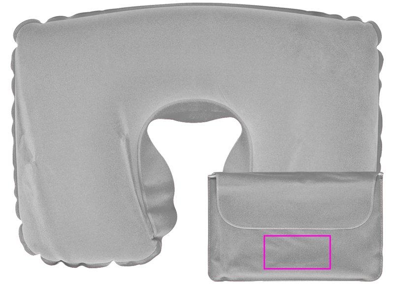 Lean back! Blow-up neck pillow in velour design in a practical pouch. Ideal to ensure relaxed travel whether by car, bus or plane. Packed in a single velour pouch. We will place your logo on one side of the neck pillow.