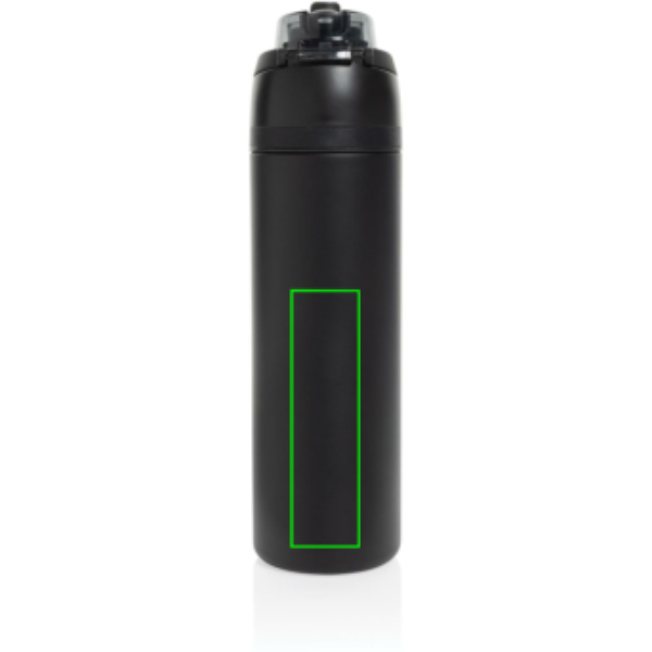 Introducing the Omni Sip Water Bottle. You deserve versatility in your hydration routine, and that's why we created the Omni Sip. This innovative bottle lets you choose how you drink. Sip through the built-in straw while holding it upright, or tilt it back to enjoy a sip from the wide-mouth opening. Ready for action at a moment's notice, just push the button to flip the top open, and push it back down to securely lock it shut, keeping out dirt and germs. 700ml content and made from RCS certified recycled steel. The Omni Sip is entirely leak-proof. Packed in FSC giftbox. Total recycled content: 67% based on total item weight.