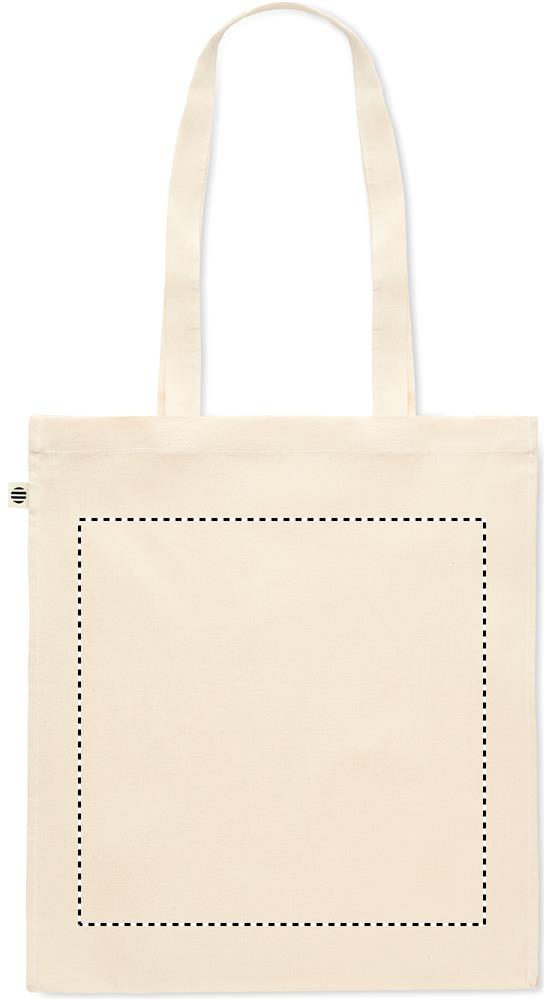 Organic cotton shopping bag with long handles and gussets. 140 gr/m².