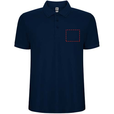 Short-sleeve polo shirt. Collar and sleeves edging in 1x1 ribbed fabric with detail. 3-button placket. Reinforced covered seams in collar. Side slits and optional pocket. Removable label. Anti-pilling treatment.