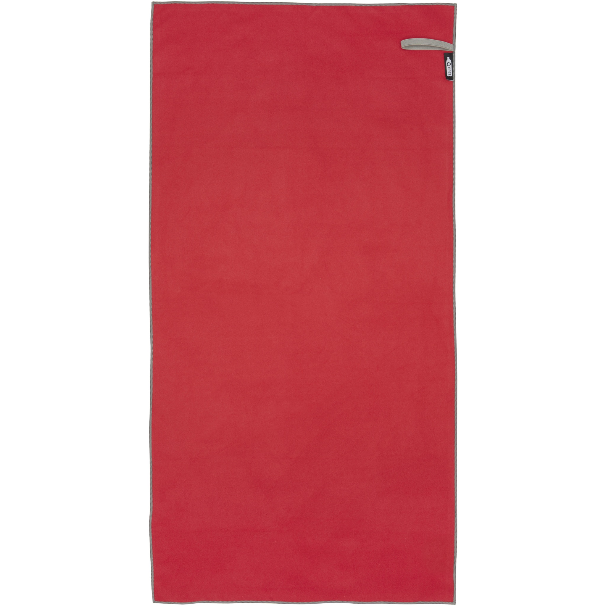 The Pieter sport towel absorbs very well, is lightweight, dries quickly, and the fabric is durable and extremely soft. When the towel is folded and secured with the elastic band it's reduced to a small size, making it suitable for bringing to the gym, swimming pool, or for when going backpacking or camping. The towel has a size of 50 x 100 cm and is made from 90% GRS recycled polyester and 10% nylon, and can be washed in the washing machine at 40 °C. Delivered with a storage pouch (17 x 13 cm) made from recycled PET plastic, which provides a great area for printing a logo.