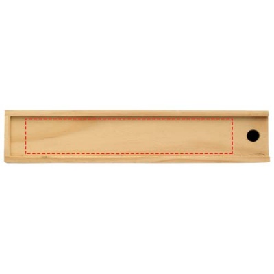12 colouring pencils in wooden gift box with sliding cover, which has a ruler function at the back. Decoration not available on components.