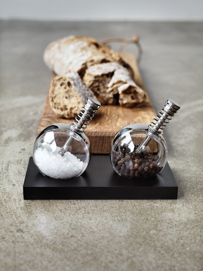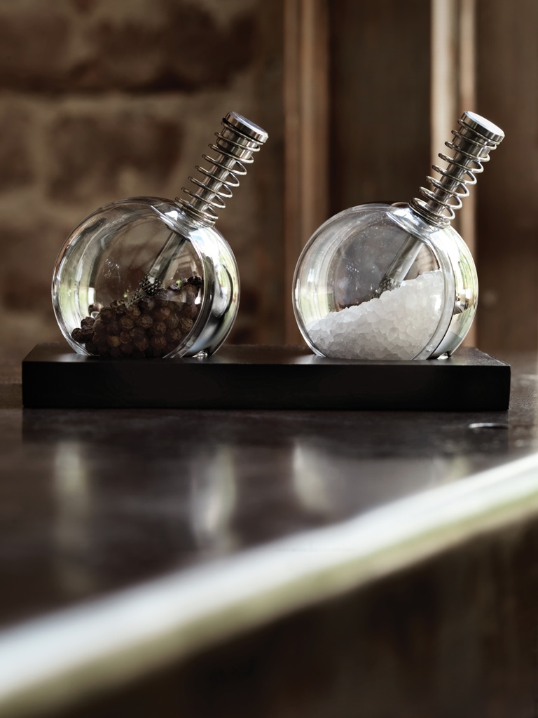 Planet is a stylish pepper and salt set that has a unique spring-action design in each grinder that allows convenient one-hand operation. As the globes are transparent it’s easy to see your sea salt and peppercorn levels. Registered design®