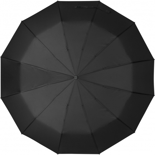 Extremely robust luxury pocket umbrella with automatic opening and closing, rubberised handle, fibreglass and metal poles, 190T pongee covering and a matching colour protective cover. Storm-proof up to 180 kmh wind speed. We print your logo on a segment.