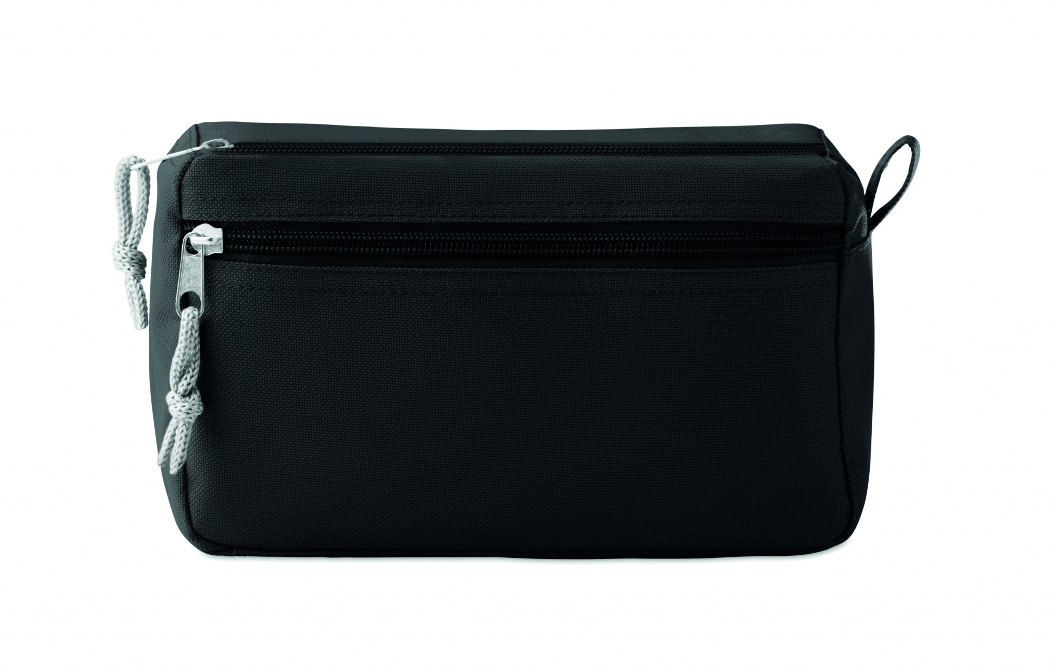 Cosmetic bag with double zipper. 600D polyester with PPE backing.