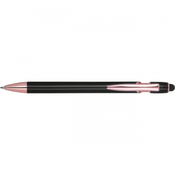 Semi gel pen made from recycled aluminum with touch pen and blue-writing large-capacity refill (1 mm tip). Your logo is applied to the barrel using laser engraving.
