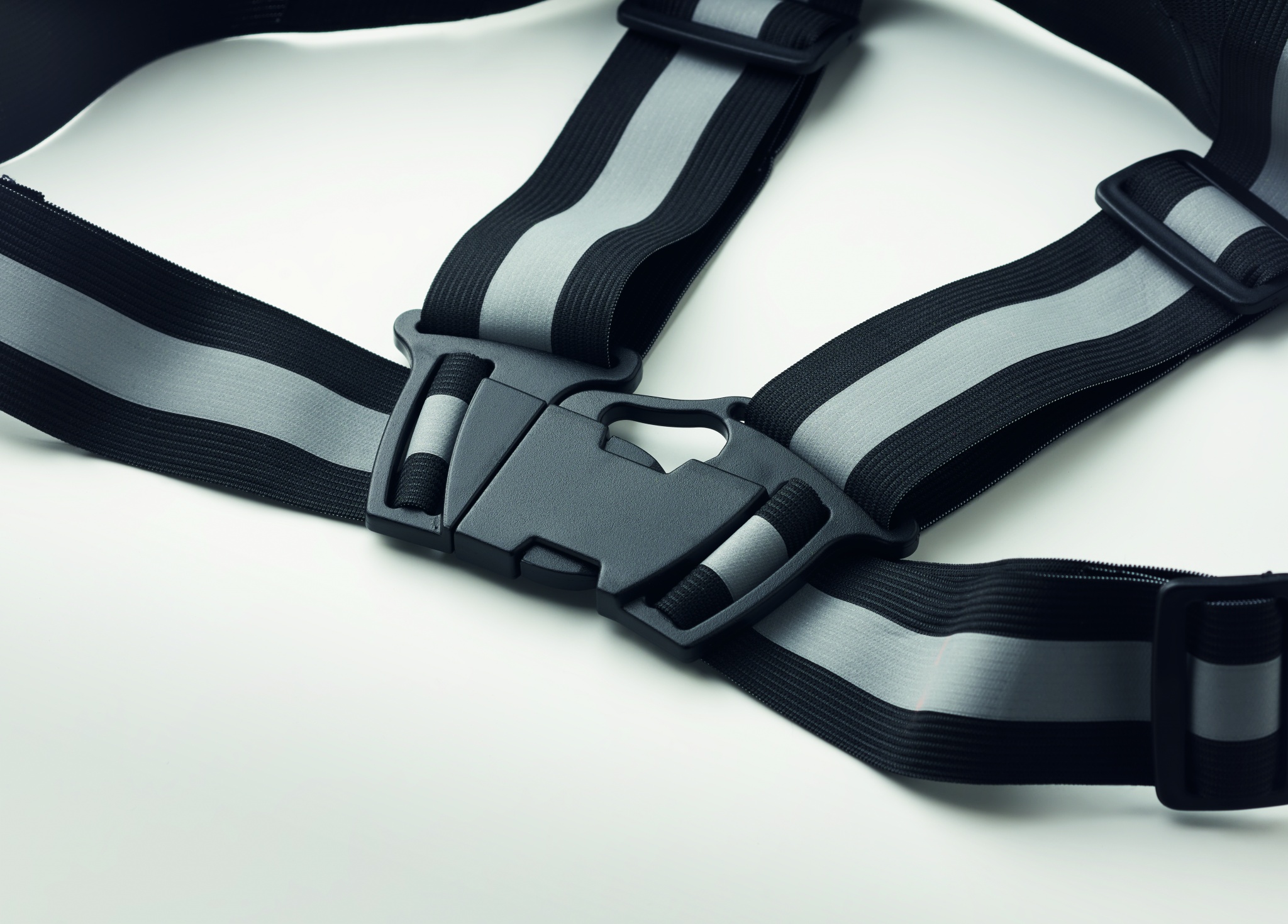 Adjustable 360°reflective body belt with silver stripes. For promotional use only.
