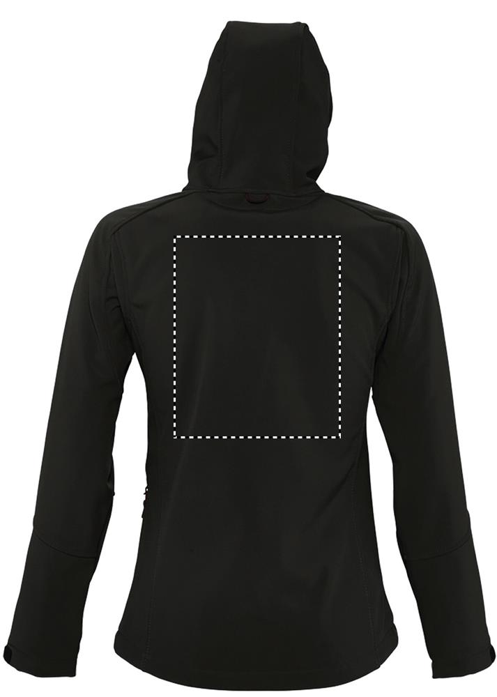 SOL'S REPLAY WOMEN, women's hooded softshell, 94% polyester - 6% elastane, fleece lining: 100% polyester, 3 layers, 8000 mm waterproof and breathable membrane softshell 340, 2 zipped side pockets and 1 zipped chest pocket, adjustable waist drawstring, adjustable cuffs with self-gripping fastener, hood with drawstring. About sizes matching, please refer to the size chart in the product documentation section.