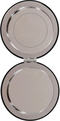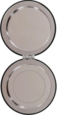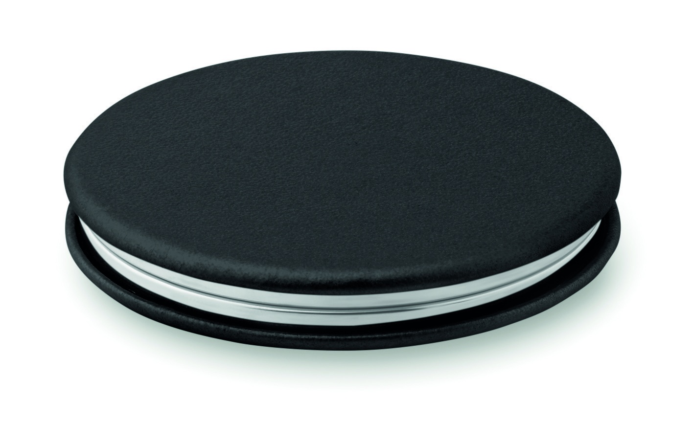 Double mirror with magnetic closure in round shape with PU cover.