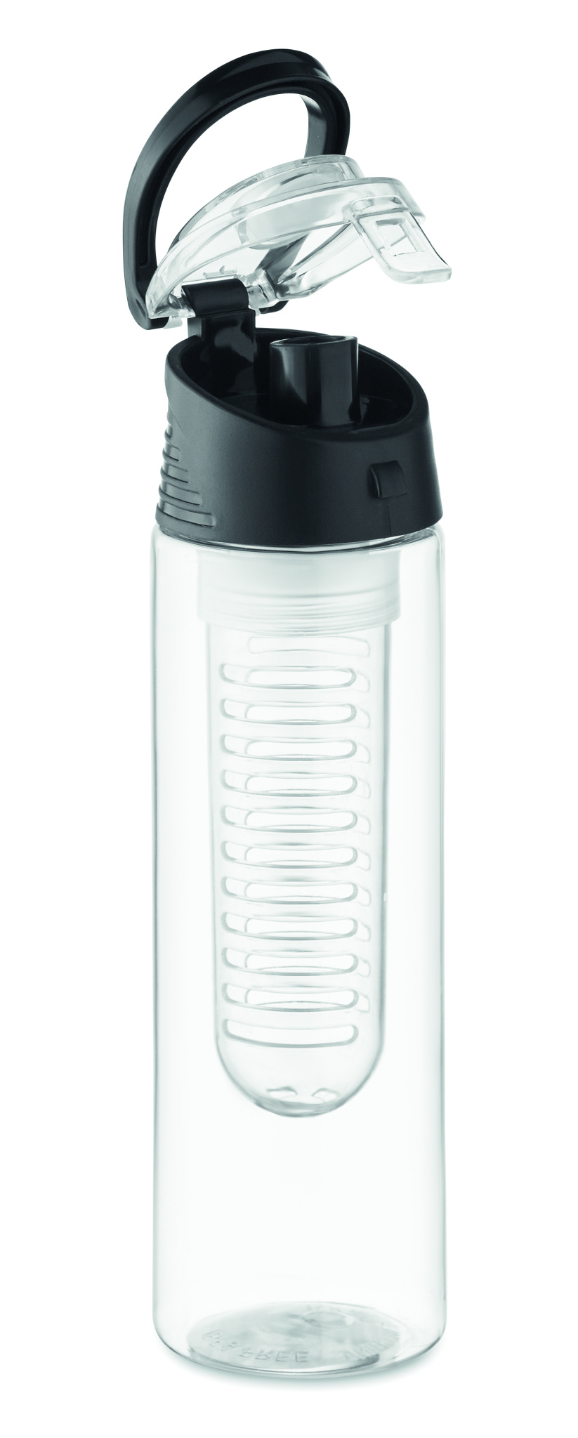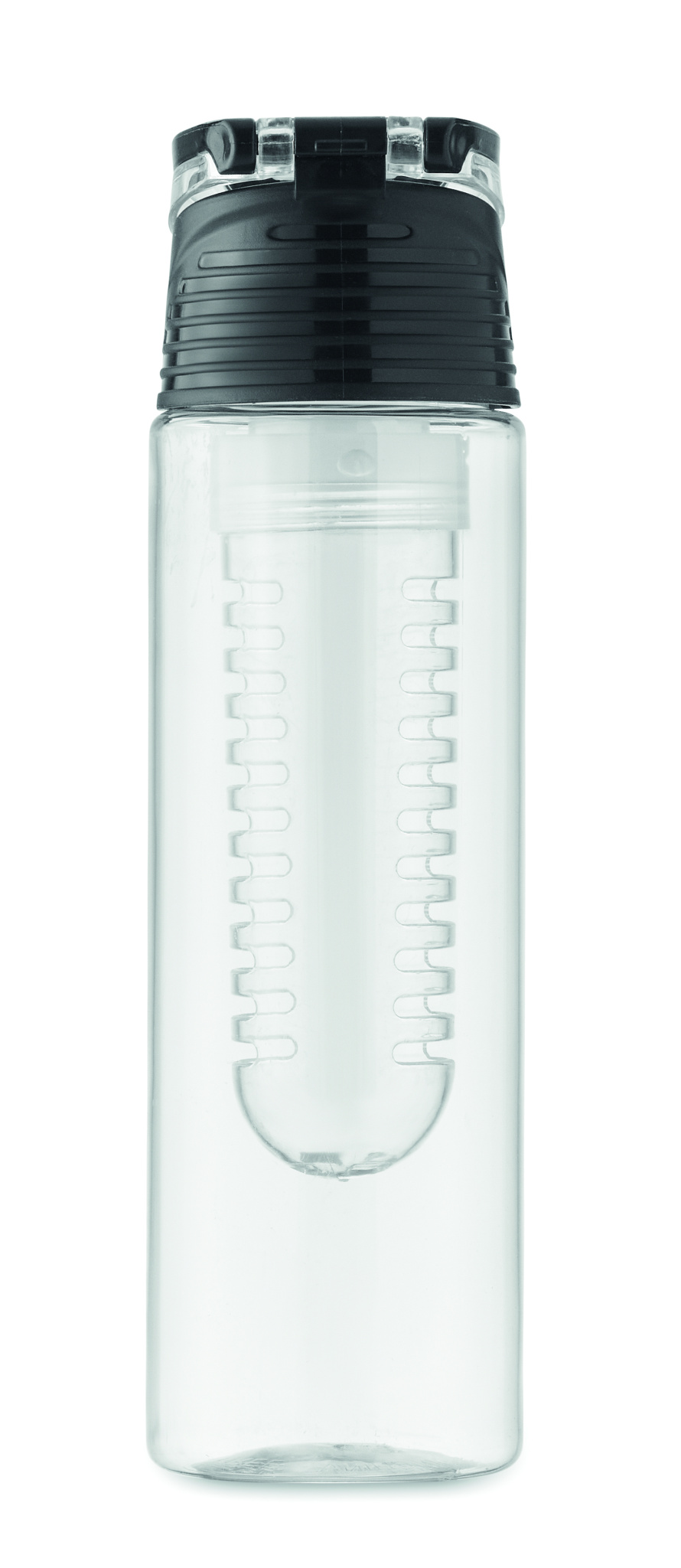 Water bottle in RPET with removable fruit infuser with carrying handle and leak proof lid. Capacity 500 ml.