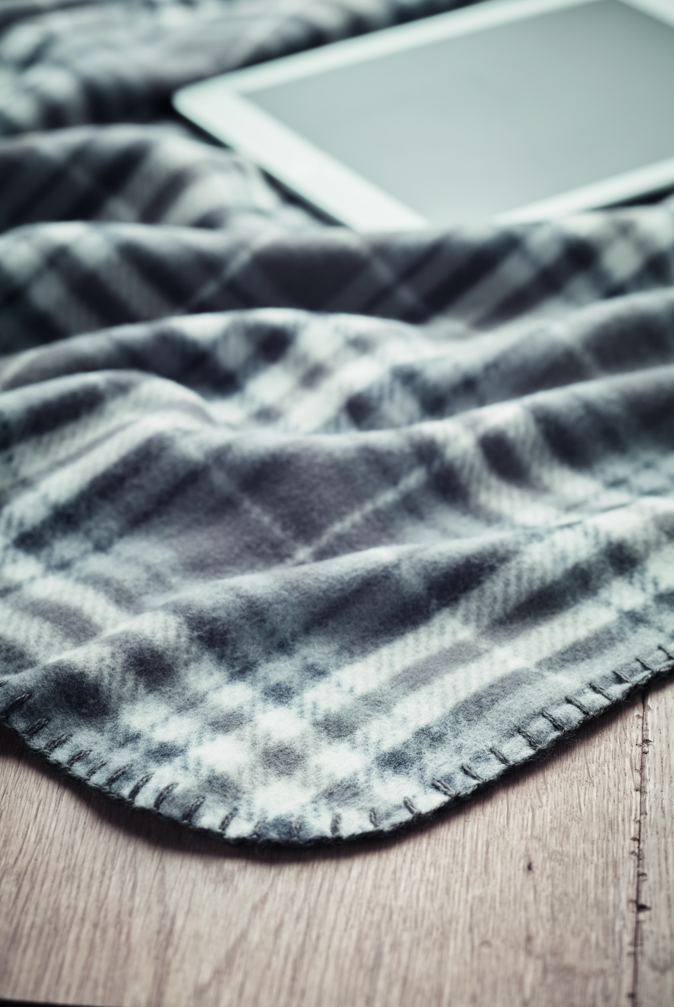 Fleece blanket with squared pattern in RPET with in RPET polyester travel pouch. 180 gr/m² fleece.