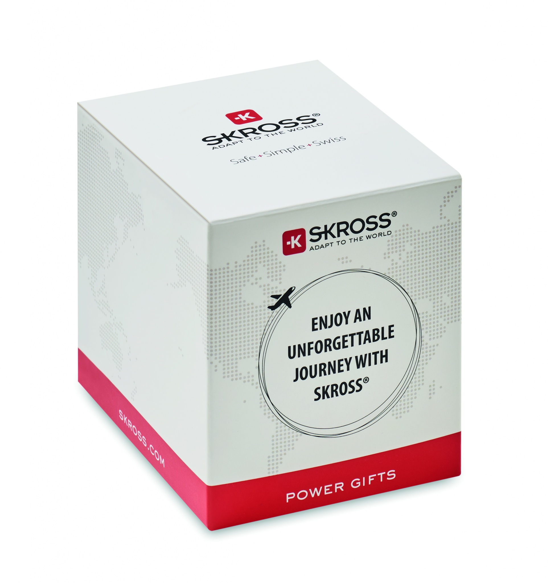 SKROSS® MUV USB A/C. World travel adapter with 15W USB Type-C and 12W Type-A ports.